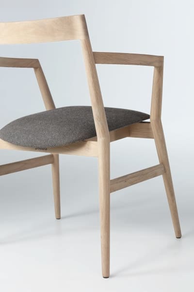 Dobra is based on the traditional typology of a wooden chair with an upholstered seat. The chair’s character is defined with a double, symmetrically placed leg cones. On the cones joints, the axis changes angle in order to meet the functional geometry parameters, thus bringing the dynamics in the conservative form of archetypal wooden chair with armrests.