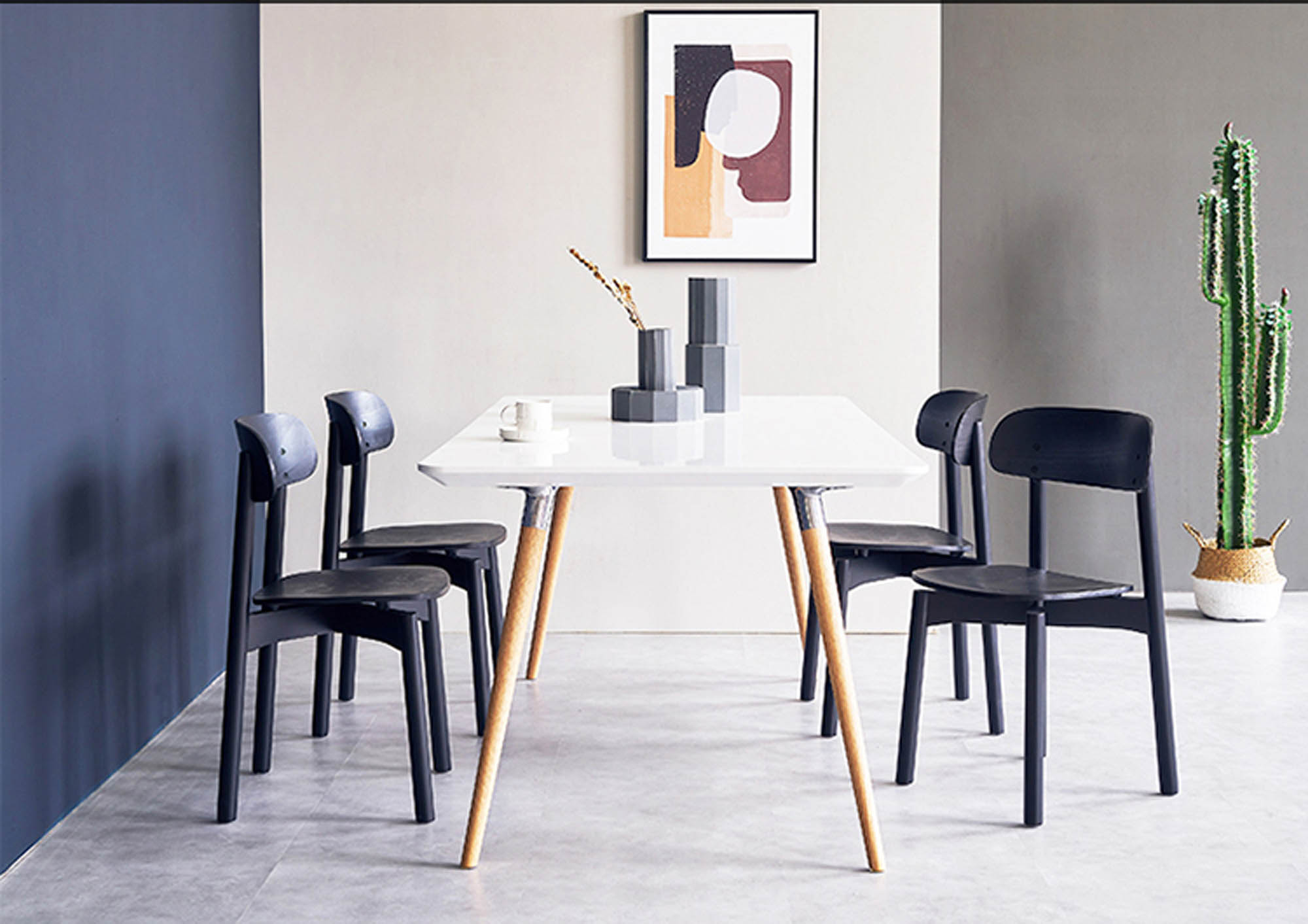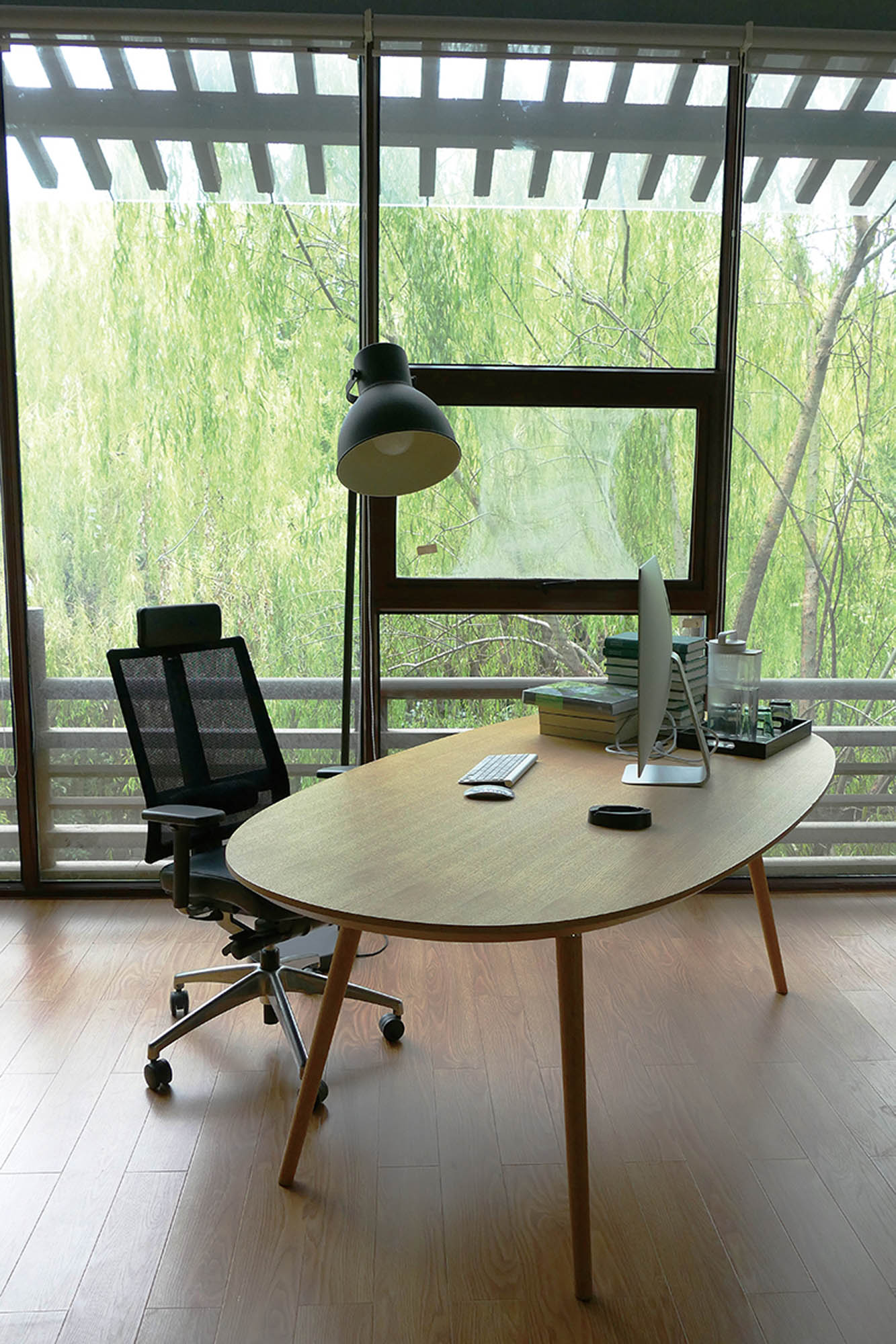“Flux table shows a beauty of the streamlined design, an ideal combination between white MDF desktop and natural light solid wood legs through a simple coupling, let the whole design looks simple and grand. The Flux table comes in a version created specifically for office or home use, which is shock-resistant and weatherproof. Flux is a sleek table prop by solid natural wood legs with aluminum coupling for a warm simple feel that can be combined with a range of tops available in different sizes and shapes to create a style, versatile look, for both home or contract use. In order to suit for many different areas, tabletops have many shapes for choosing: oval round, rectangle. Can meet almost all the request of different spaces. such as conference rooms, offices, and other public spaces.